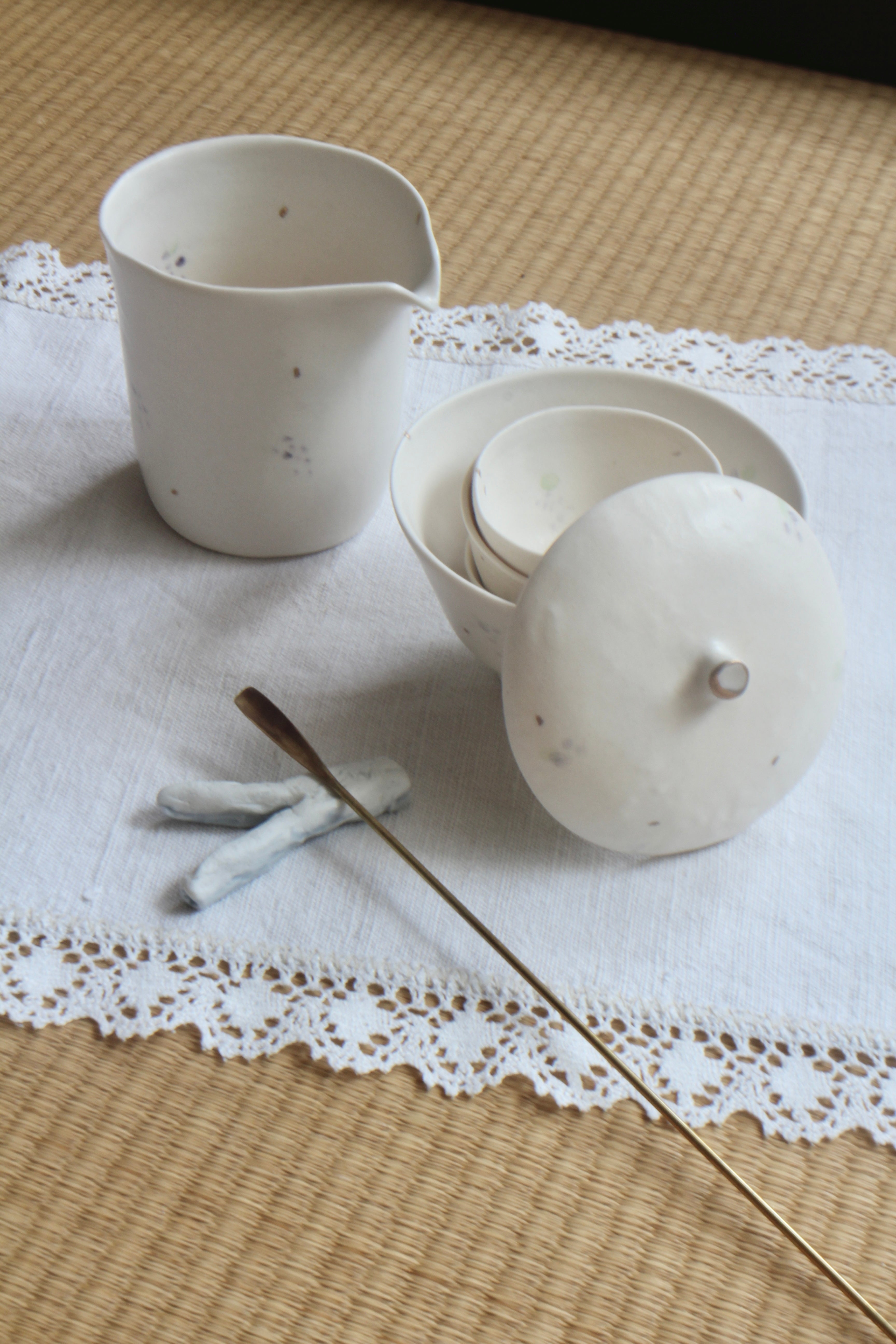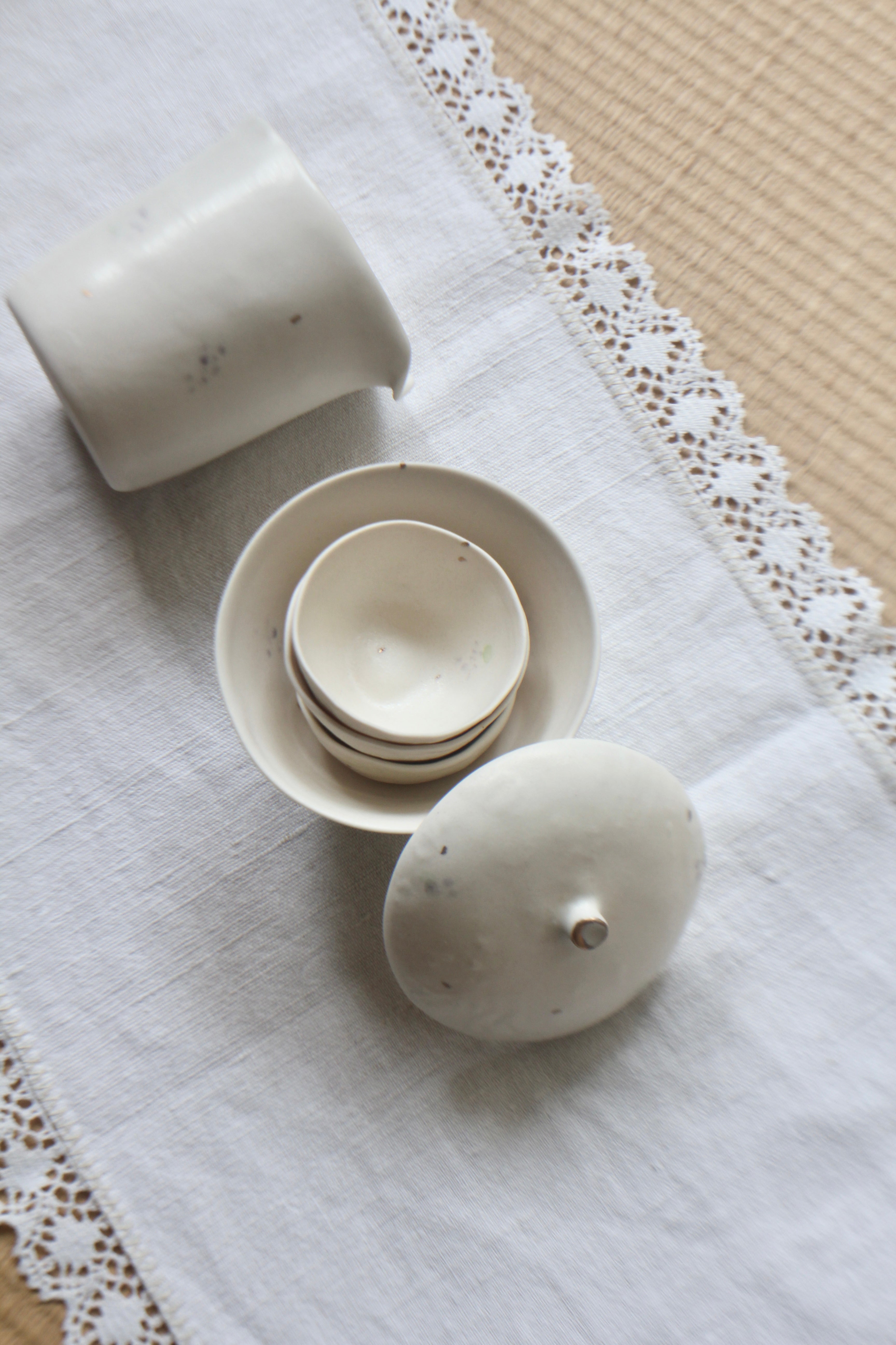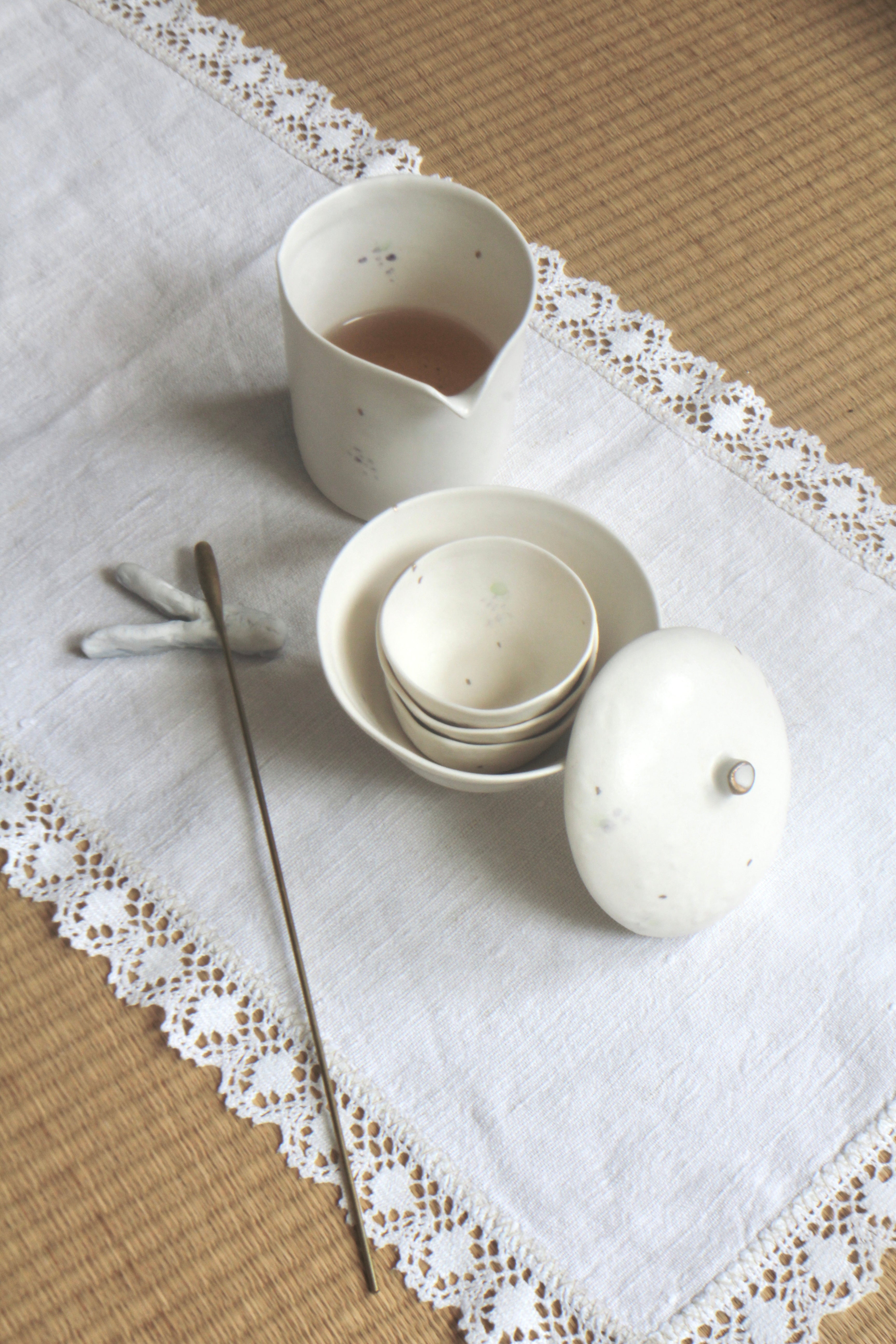 大蓋碗 x1 + 高型茶海 x1 + 圓品杯 x3 + 許願骨匙置 x1